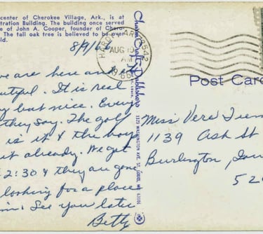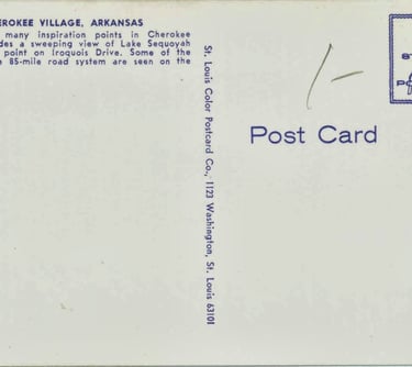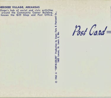 Cherokee Village Administration Building (Backside) postmarked Aug 10 1966